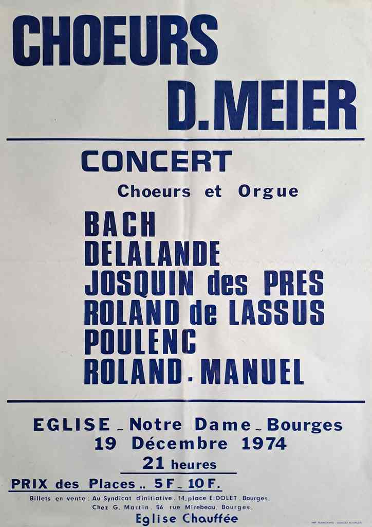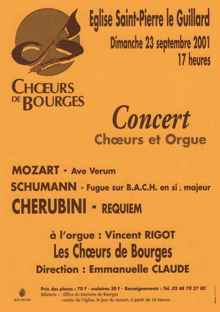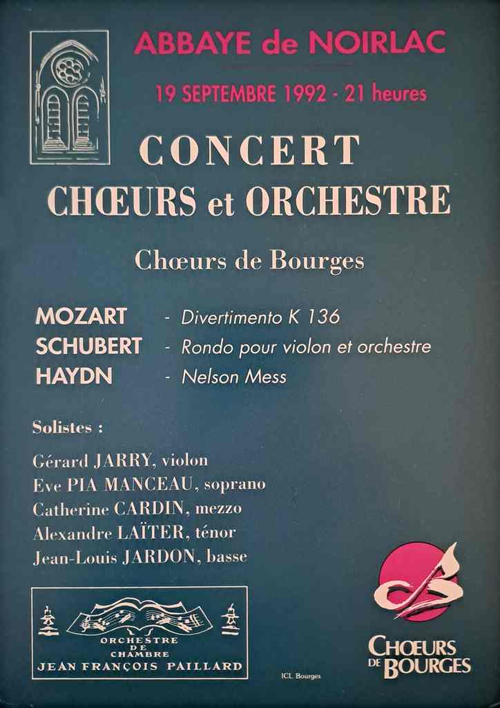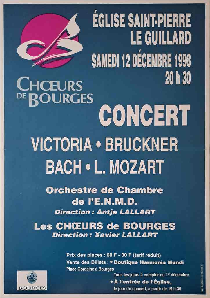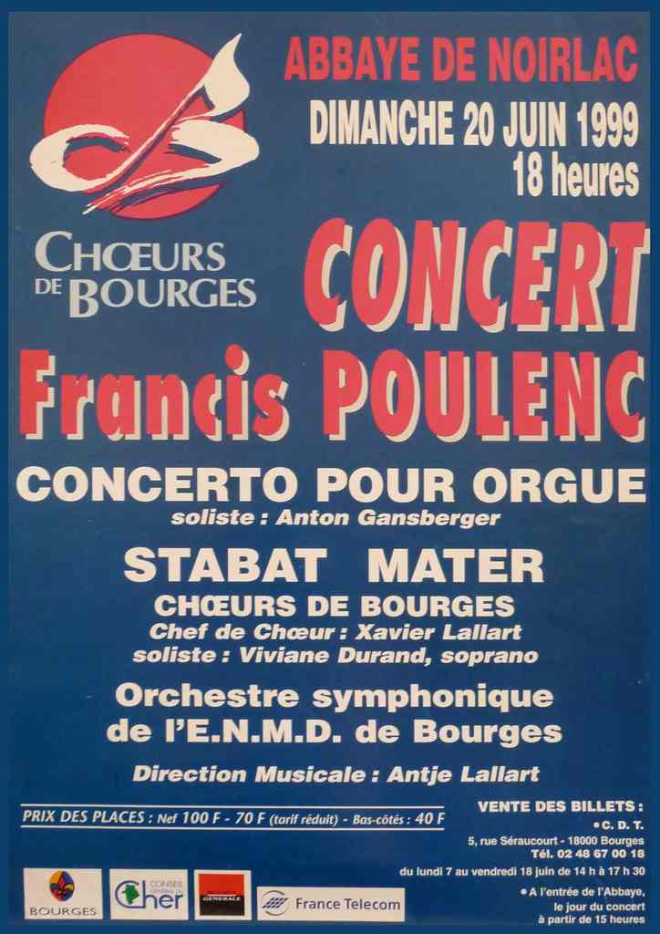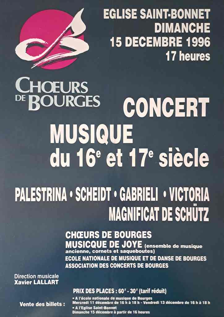 La plupart de leurs concerts sont donnés à Bourges et dans la Région Centre; de plus ils ont participé à des festivals tels que ceux de NOIRLAC, LA CHAISE DIEU, et MOISSAC, ABBAYE DE FONTMORIGNY…
