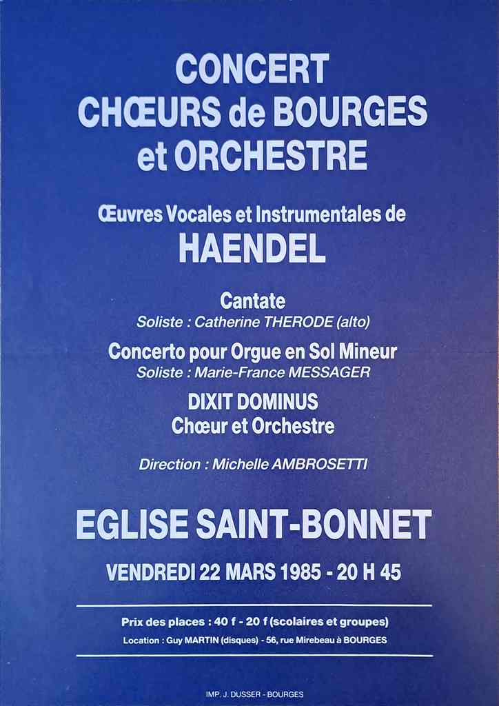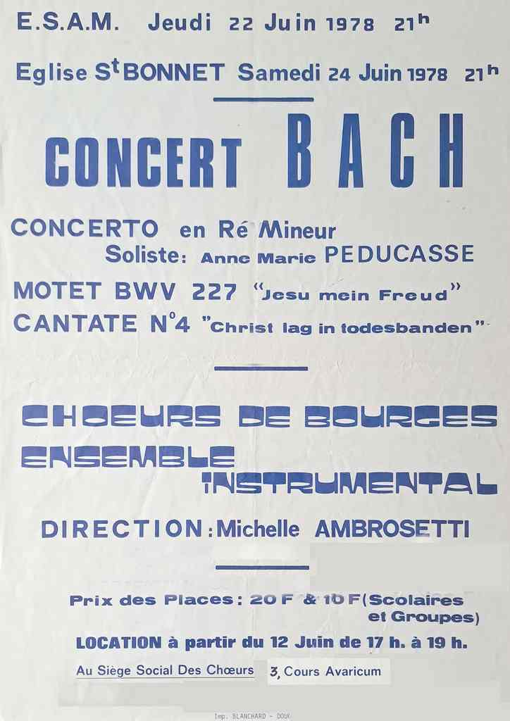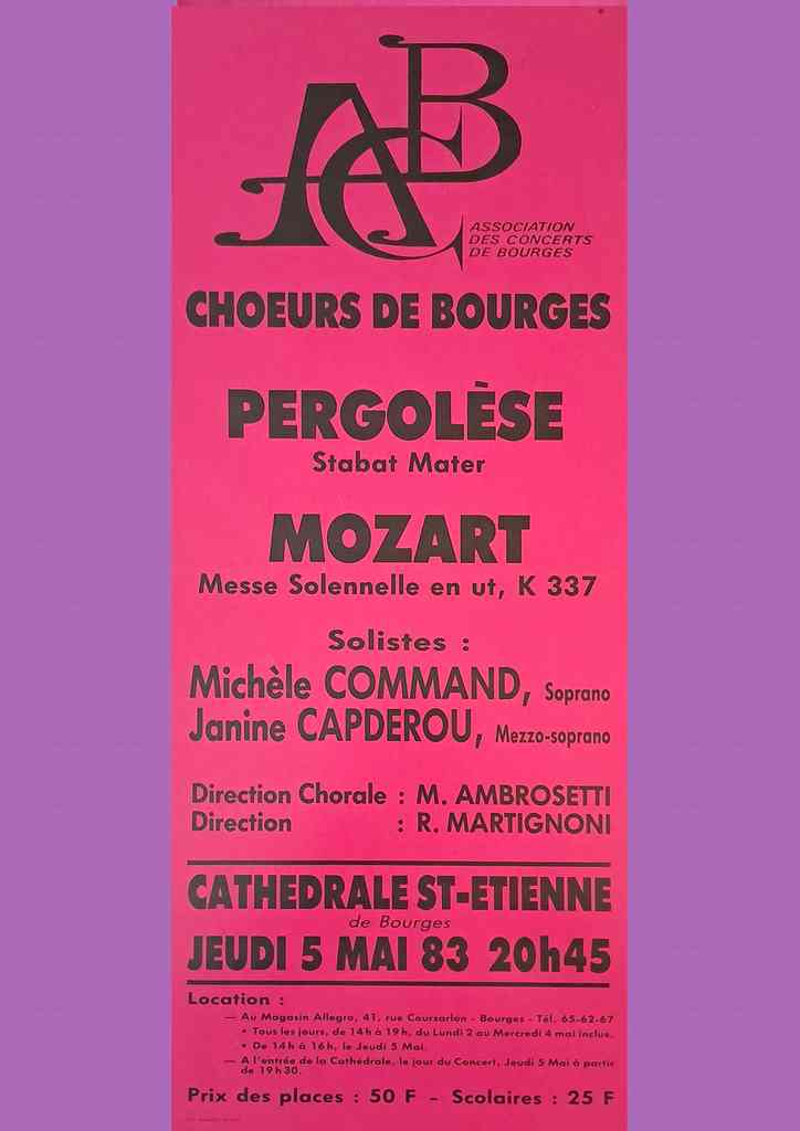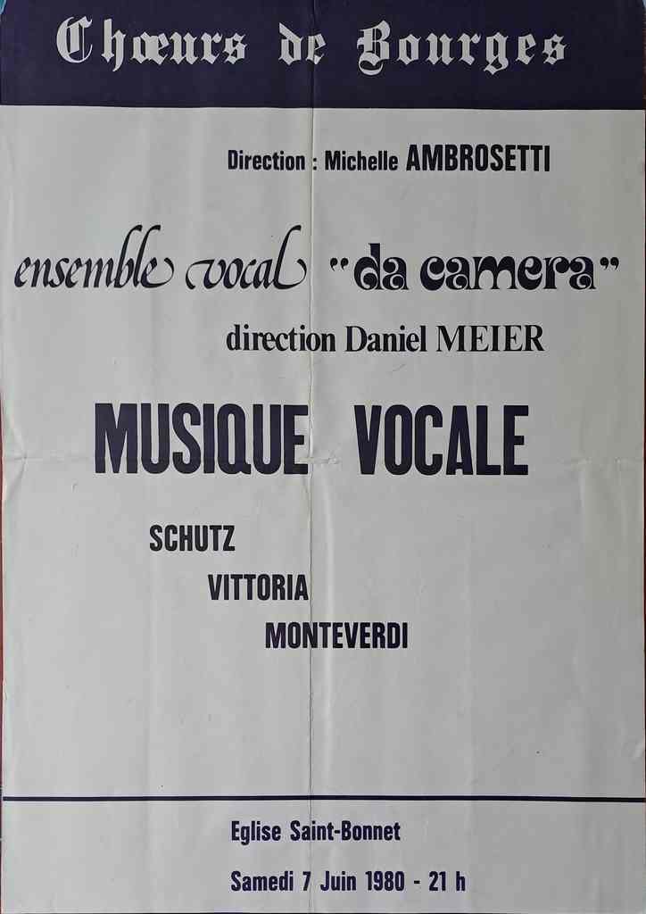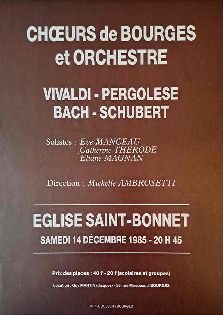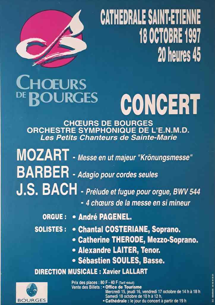 La plupart de leurs concerts sont donnés à Bourges et dans la Région Centre; de plus ils ont participé à des festivals tels que ceux de NOIRLAC, LA CHAISE DIEU, et MOISSAC, ABBAYE DE FONTMORIGNY…
