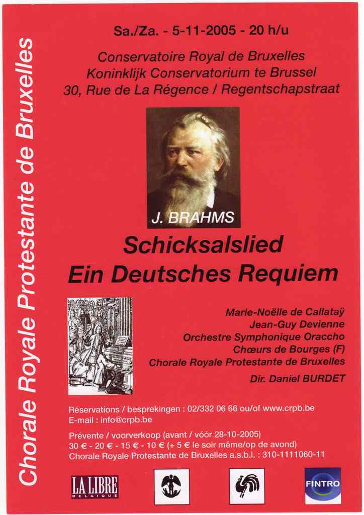 J. BRAHMS Le Requiem Allemand, Schicksalslied, Nanie.